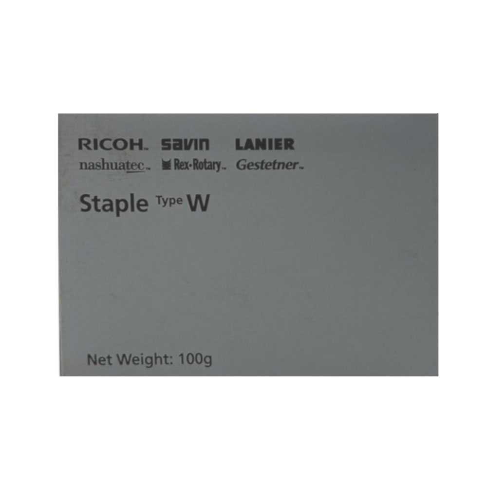 ;  Original Zubehör von : Ricoh ;  Zustand : Neu, OVP ;  Versand in : Originalverpackung ;  Hersteller-Nr. : 416710 ;  Kurzbezeichnung : Type W ;  Produkttyp : Finisher-Heftklammern ;  Stück pro VPE : 2.000 Stück ;  Druckermodell(e) : Für Finisher: SR3170, SR3240, SR3290, SR4100, SR4160